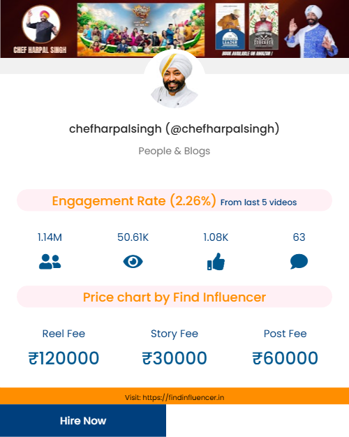 Harpal Singh Sokhi is also active on YouTube, where he shares full-length recipes and cooking shows. YouTube subscribe and pricing will be added soon, giving brands a strong long-form storytelling opportunity.