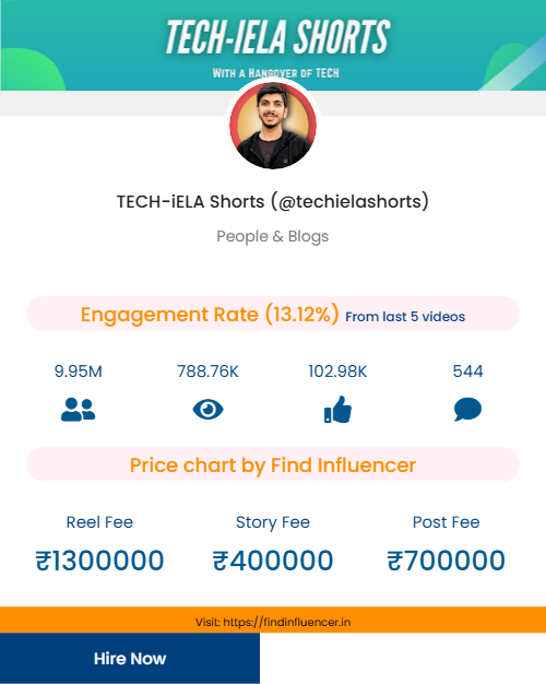 Disclaimer*: “The content and promotion prices shown on this website are based on our own analysis and suggestion, generated through Find Influencer’s (FI) in-built calculator using public metrics (followers, engagement, category). These are indicative values for informational purposes only and are not official rates. Actual fees may vary in real collaborations. Find Influencer has no direct affiliation or endorsement with the influencers mentioned unless stated otherwise. Please confirm directly with the influencer or their agency before making any business decision. If you are the influencer featured here and wish to update or change your displayed price, you can contact us at info@findinfluencer.in or call at 8218235970. We will promptly verify and make the necessary corrections.”