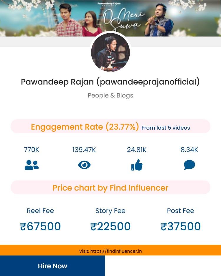 This guide covers Pawandeep Rajan’s promotional pricing, the factors that determine his value, and how to plan a successful influencer collaboration using the Find Influencer Price Calculator.
