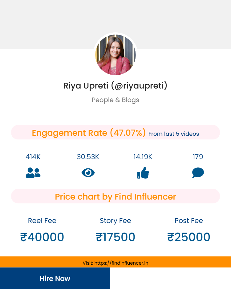 This guide explores Riya Upreti’s promotional pricing, the key factors that influence her value as a creator, and how brands can plan successful influencer collaborations using the Find Influencer Price Calculator.