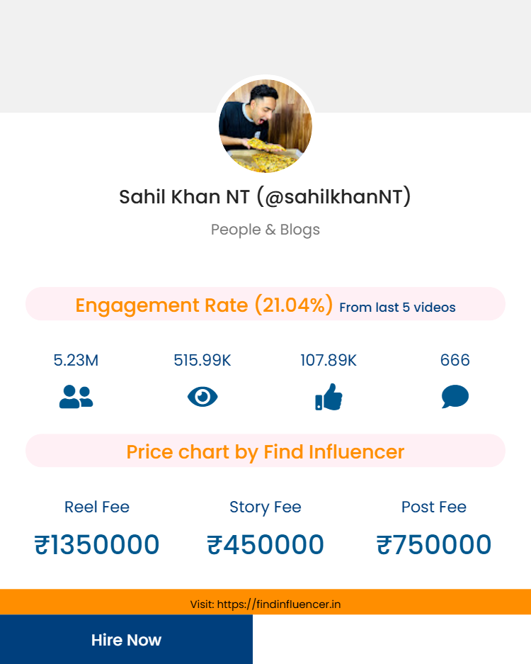 Disclaimer*: “The content and promotion prices shown on this website are based on our own analysis and suggestion, generated through Find Influencer’s (FI) in-built calculator using public metrics (followers, engagement, category). These are indicative values for informational purposes only and are not official rates. Actual fees may vary in real collaborations. Find Influencer has no direct affiliation or endorsement with the influencers mentioned unless stated otherwise. Please confirm directly with the influencer or their agency before making any business decision. If you are the influencer featured here and wish to update or change your displayed price, you can contact us at info@findinfluencer.in or call at 8218235970. We will promptly verify and make the necessary corrections.”