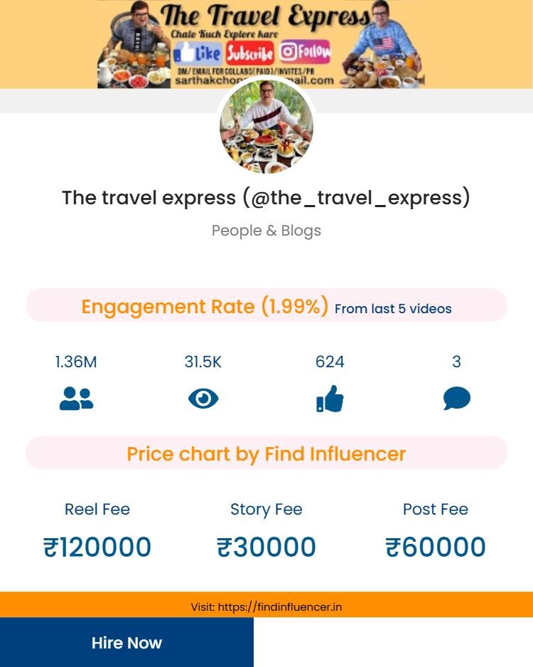 Disclaimer*: “The content and promotion prices shown on this website are based on our own analysis and suggestion, generated through Find Influencer’s (FI) in-built calculator using public metrics (followers, engagement, category). These are indicative values for informational purposes only and are not official rates. Actual fees may vary in real collaborations. Find Influencer has no direct affiliation or endorsement with the influencers mentioned unless stated otherwise. Please confirm directly with the influencer or their agency before making any business decision. If you are the influencer featured here and wish to update or change your displayed price, you can contact us at info@findinfluencer.in or call at 8218235970. We will promptly verify and make the necessary corrections.”
