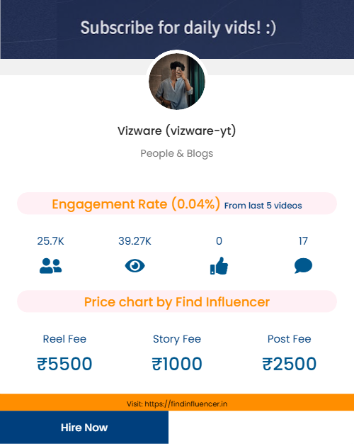 This guide explores Vizware’s promotional pricing, the key factors that define his value, and how brands can plan effective influencer campaigns using the Find Influencer Price Calculator.